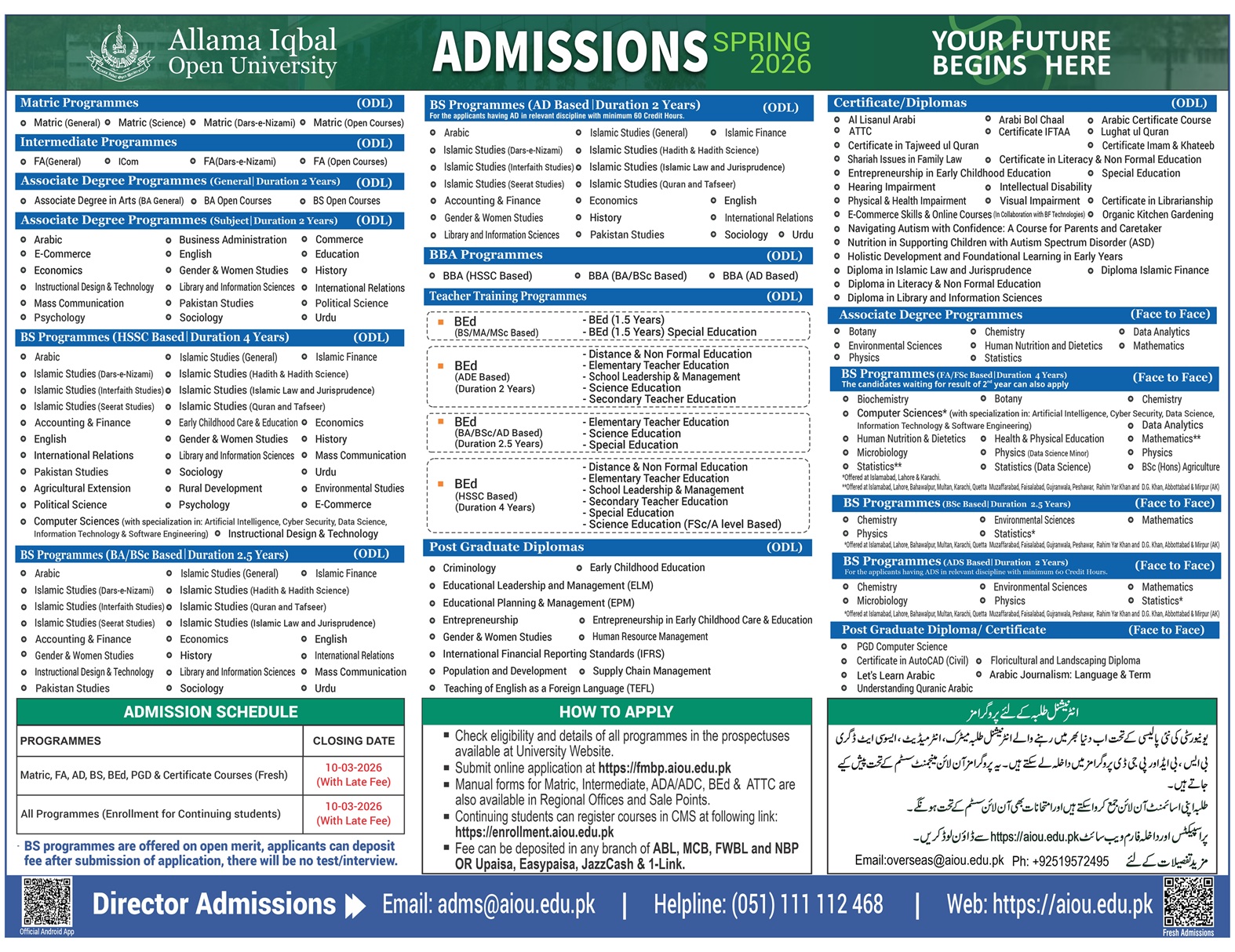 AIOU offers a broad selection of educational programs including: