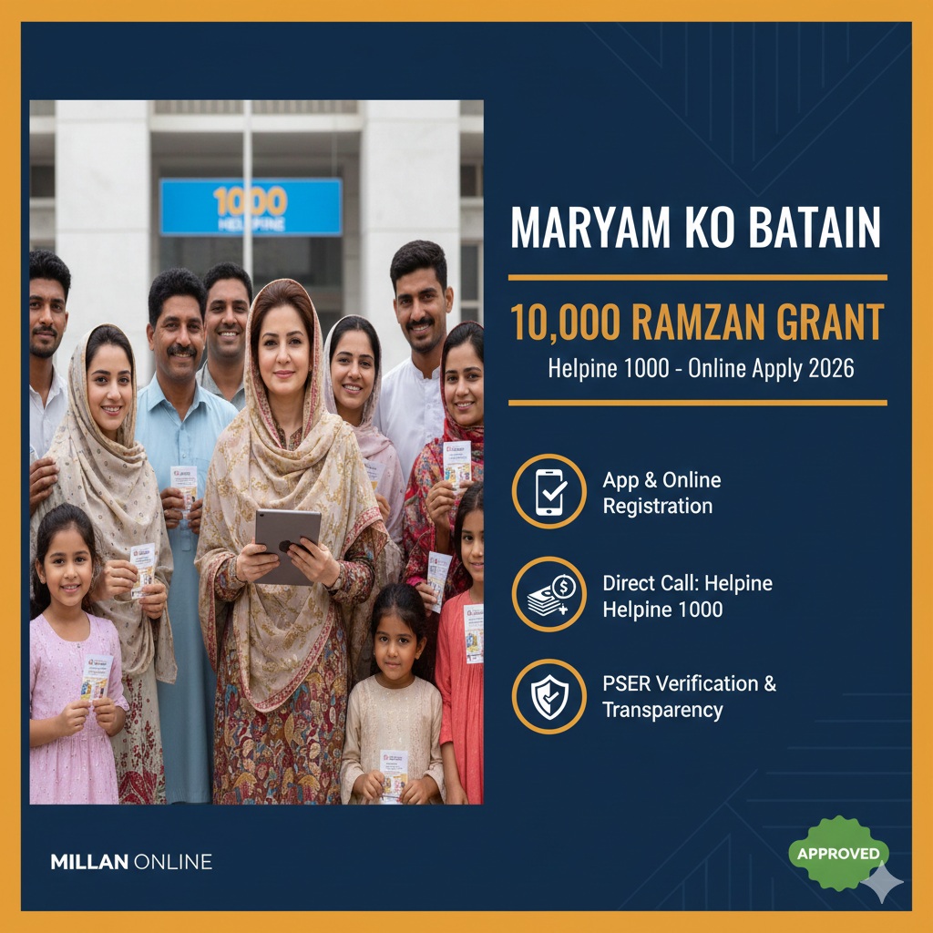 #MaryamKoBatain #RamzanGrant #PunjabRelief #MillanOnline #Helpline1000 #CMSharifScheme #Ramzan2026