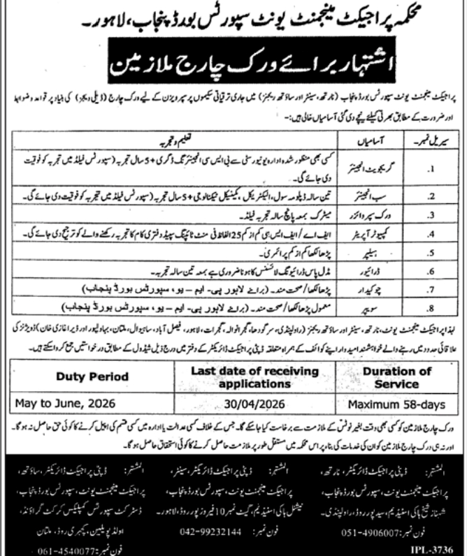 Sports Board Punjab Jobs 2026 – PMU Work Charge Vacancies Apply Now